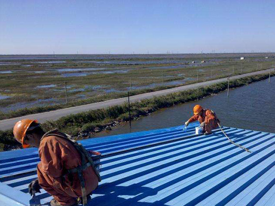 對于金屬屋面,需要保證其干凈整潔,并且使用砂紙將生銹的地方打磨干凈,再涂上基層涂料?梢赃x擇噴涂或刷涂的方式,每次涂刷要保證前一次已經干透。對于金屬屋面天溝縫的地方,可以做局部的防水,再刷上涂料。